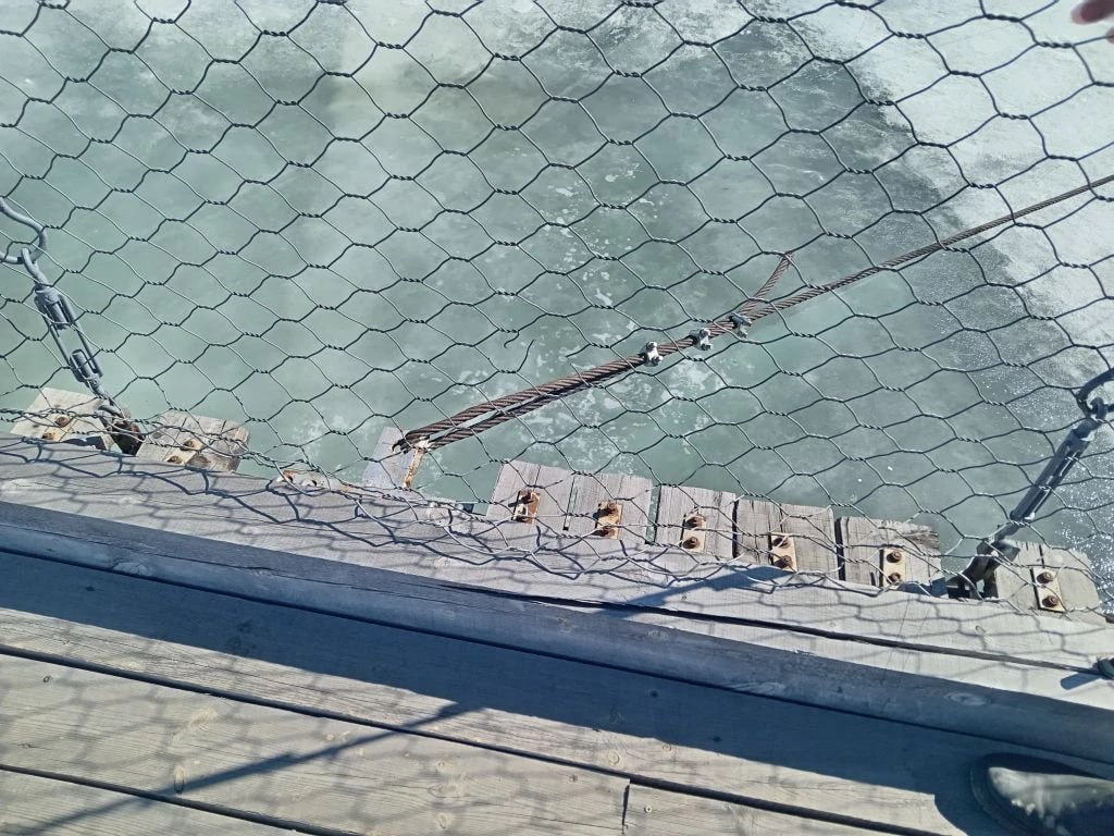 В предыдущие посещения удалось выяснить, что по мосту можно передвигаться, только если ветер не превышает показатель в 5 м/с. Кстати, год назад это стало новостью и для жителей Михайловки, они, не зная этого, смело передвигались по мосту и в более сильный ветер. Табличка с предостережением появилась только после гибели женщины в апреле 2025 года.