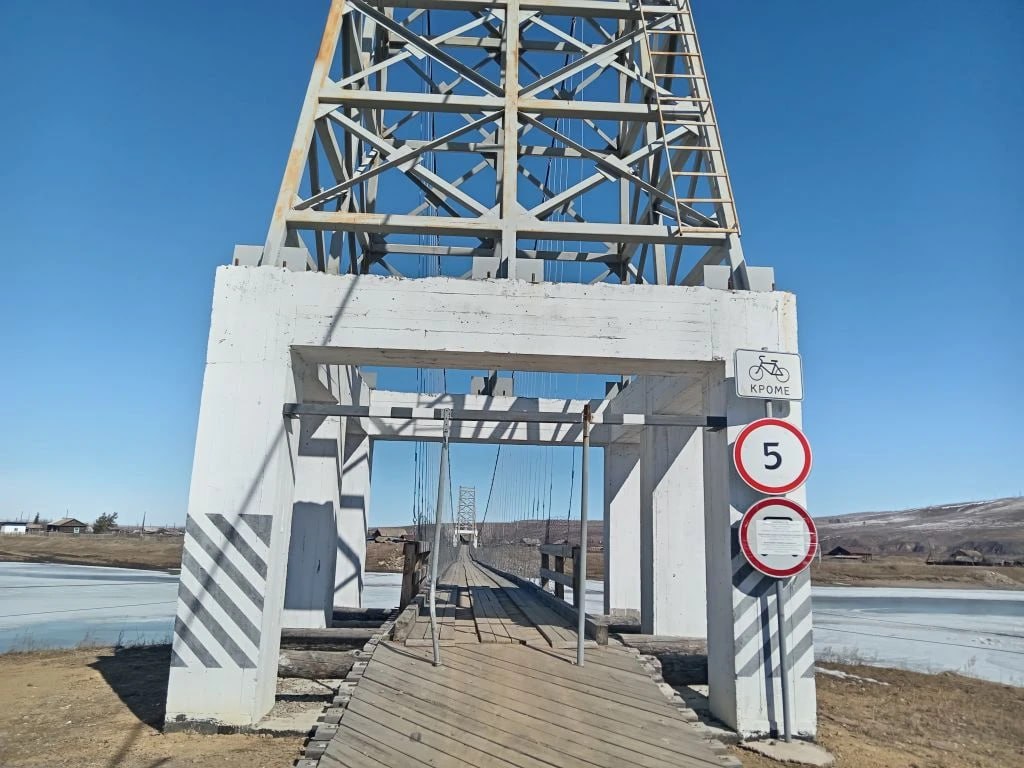 По точно такому проекту был построен мост между селами Жиндо и Хилкотой в Красночикойском районе. Простоял он совсем недолго и был практически полностью разрушен ураганным ветром весной 2017 года. Тот урок, по всей видимости, не был усвоен, и через несколько лет точно такой же мост построили в Нерчинском районе.